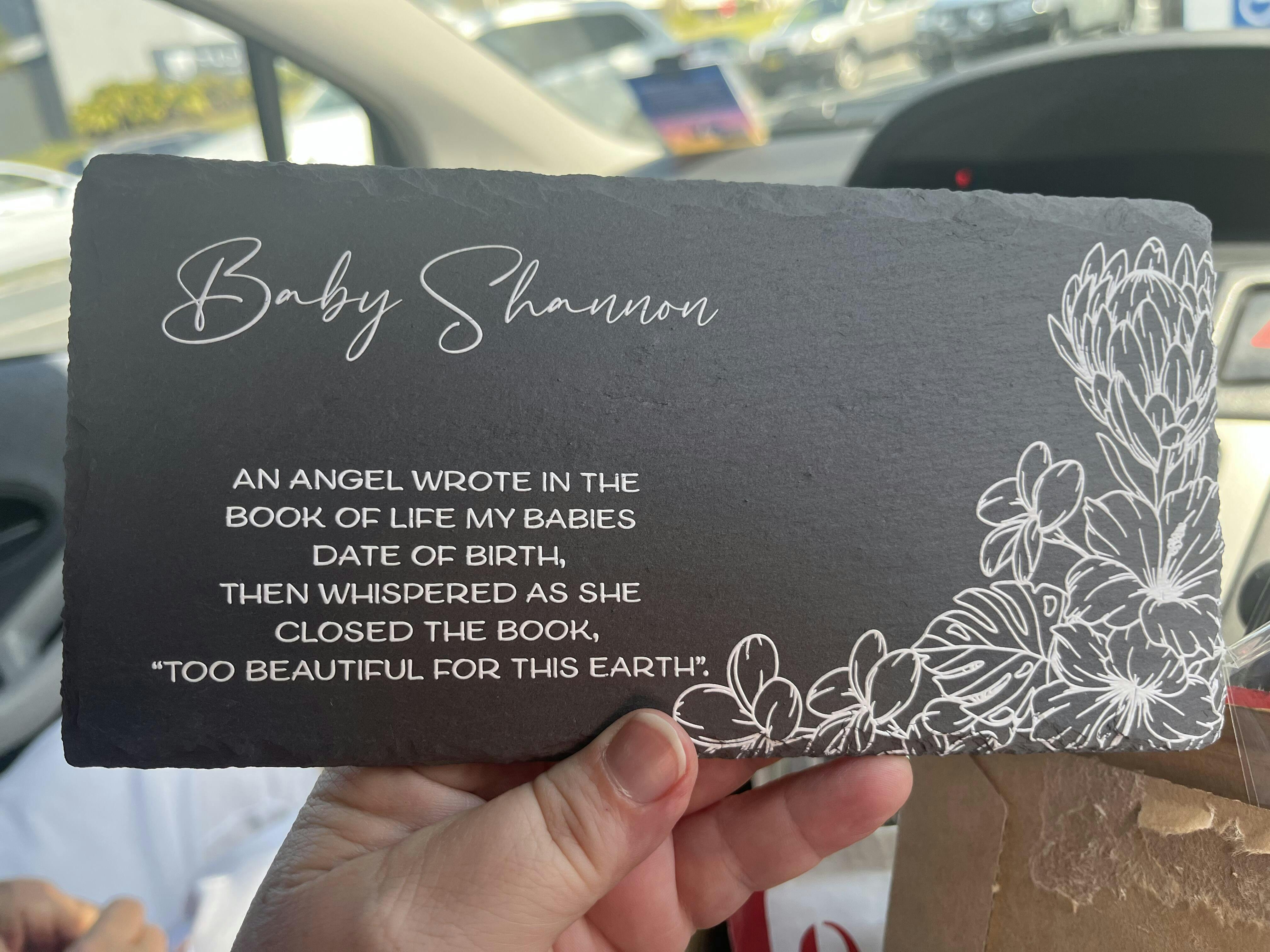 Measuring 10 x 20cm and made from genuine slate with hand-chipped edges, each plaque is unique — just like the love it represents.