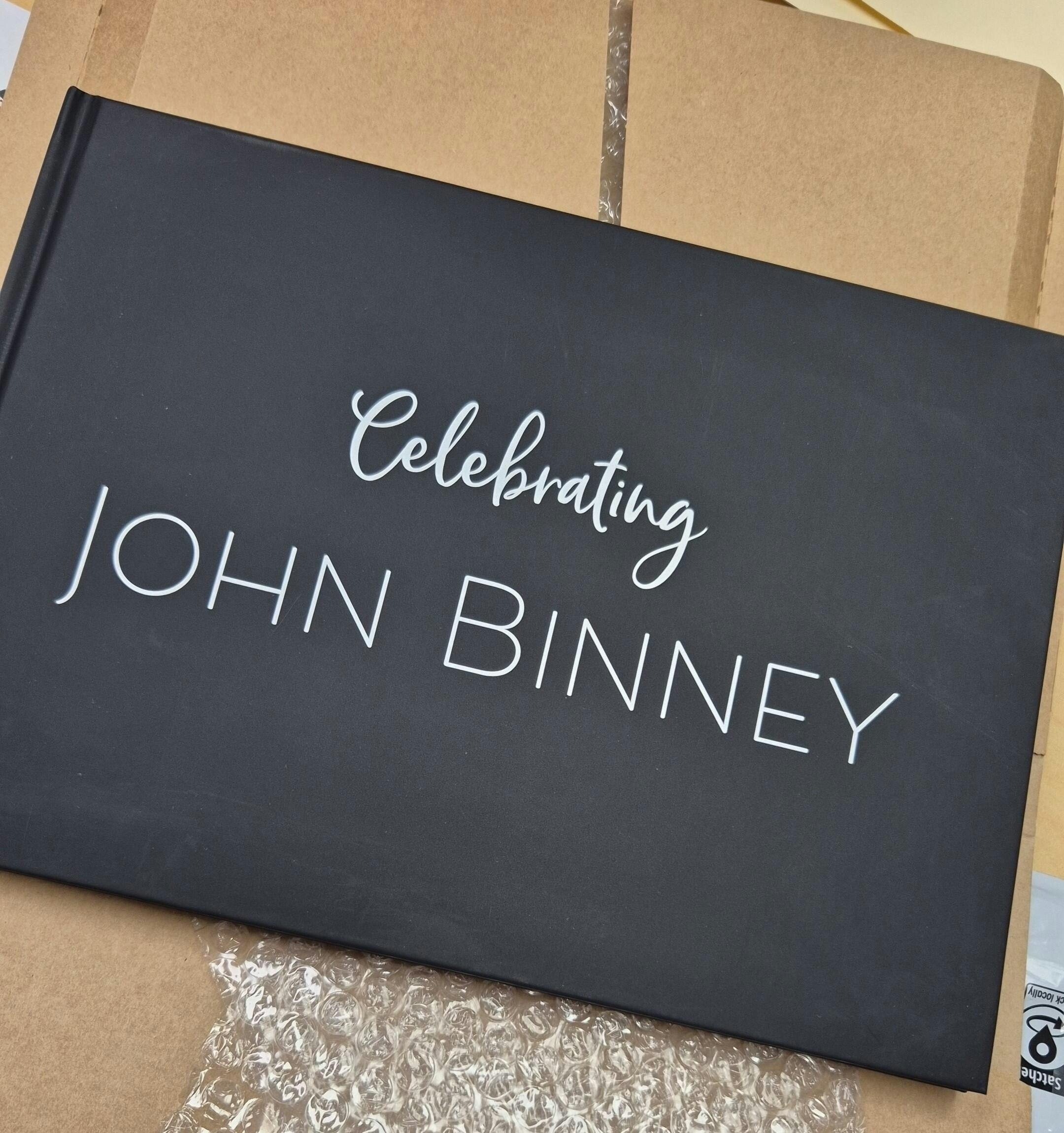 This custom typography guest book can be personalised with a custom message and name of your choice in a wide range of fonts.