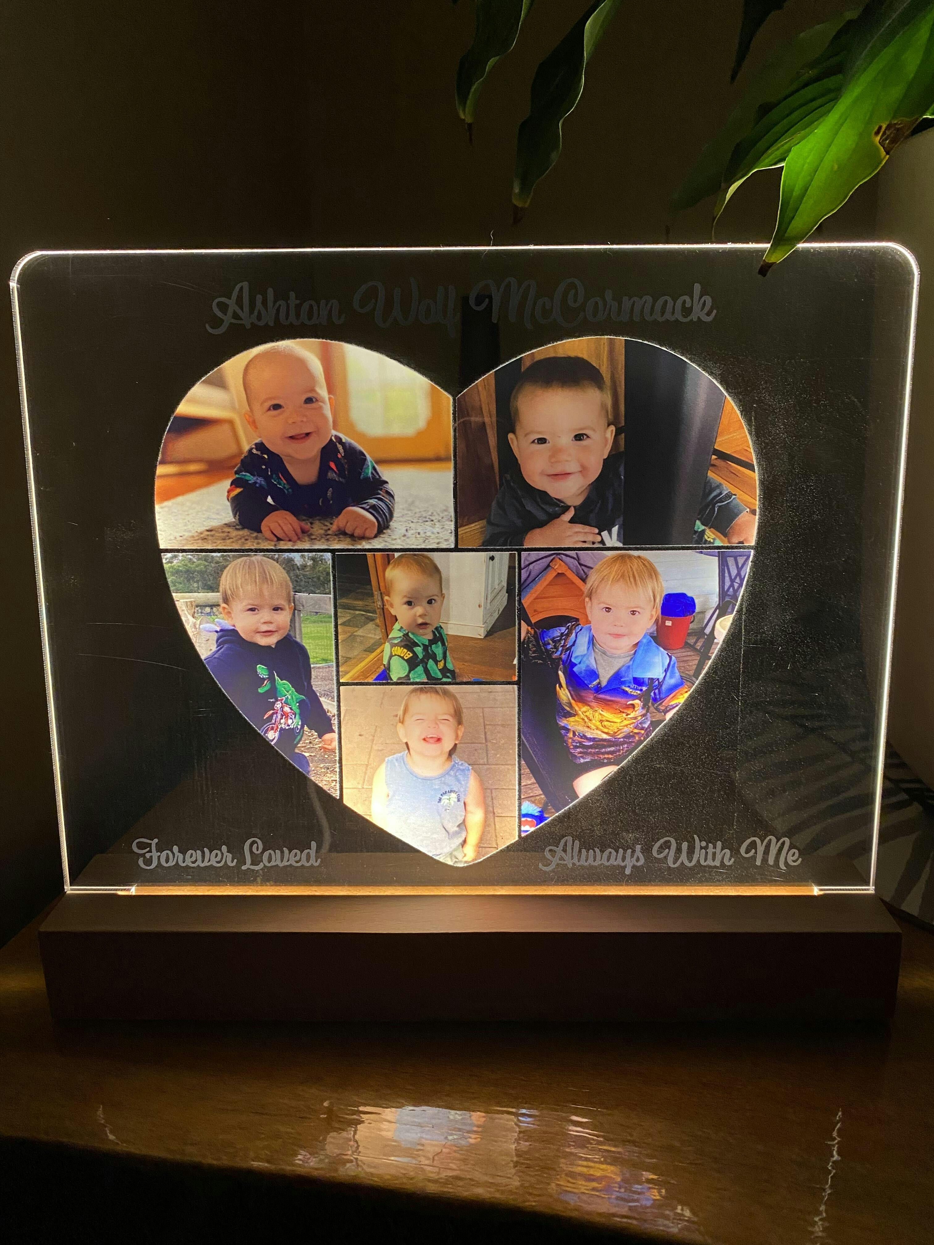 Our Heart-Shaped Collage night light, a radiant gift that illuminates the love shared with your special people. Crafted with care, this night light features a heart-shaped design collage of your most cherished memories.
