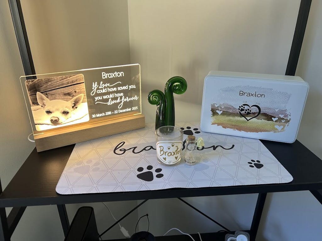The clear acrylic plaque is professionally UV printed on the reverse, creating a smooth, glass-like finish that looks elegant even when the light is switched off. When illuminated, the soft LED glow gently highlights your pet’s image and message, filling the space with warmth, remembrance, and love.